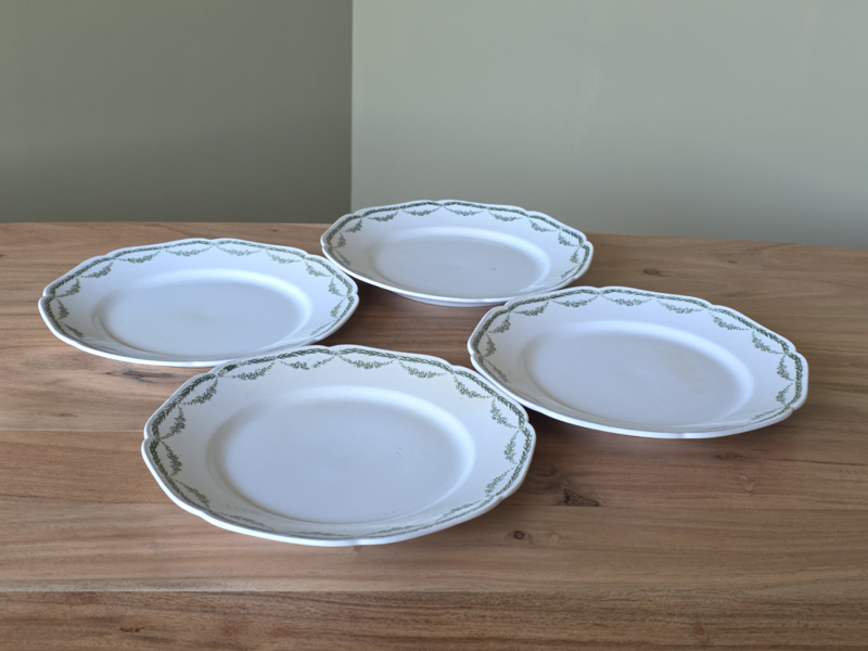 Petrus Regout Marie set 4x dinerbord 23,5 cmMet craquelee en lichte verkleuring, mooie brocante look