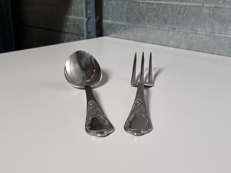 In mooie staat, kan in de vaatwasser, lengte vork en lepel is 24,5 cm