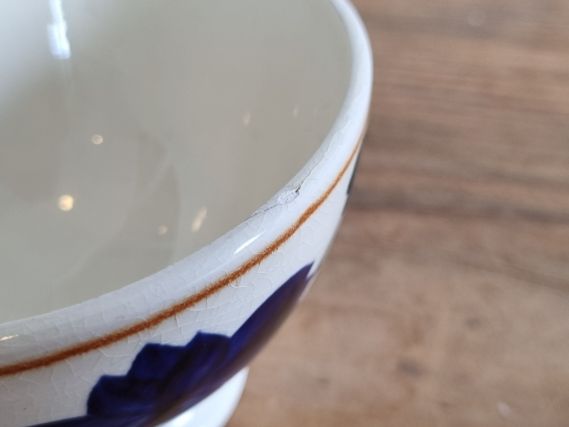 met een klein lijntje op de bovenrand, verder In mooie staat, doorsnede is 10 cm, hoogte 6 cm