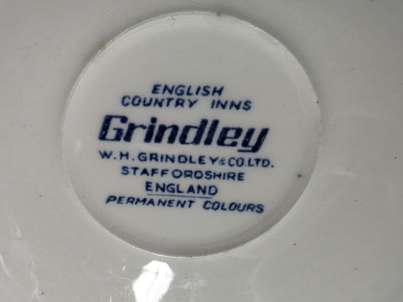 Engels blauw Grindley Country Inns kop en schotel (decor binnenin)