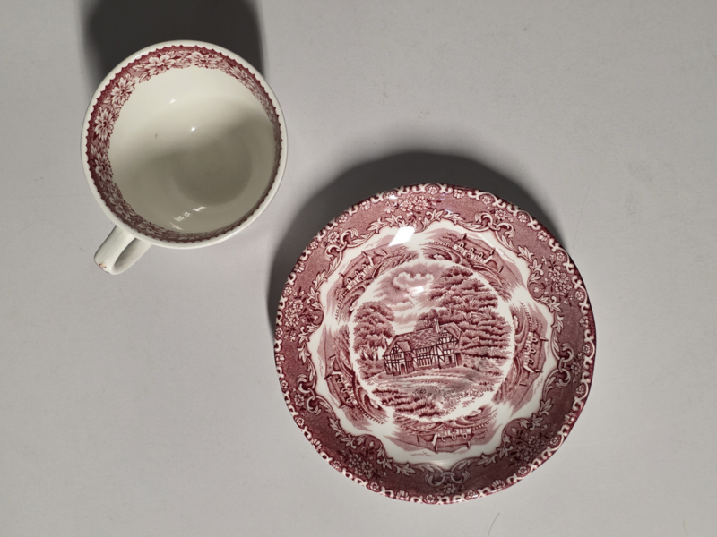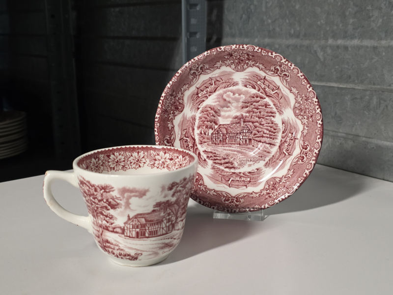 Engels rood Grindley Country Inns kop en schotel (decor binnenin)