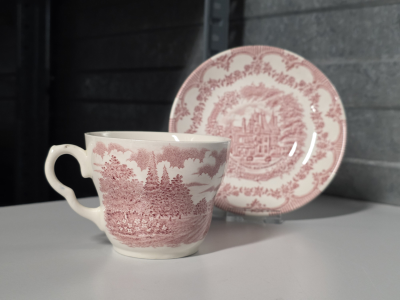 Engels rood English Ironstone Tableware EIT kop en schotel