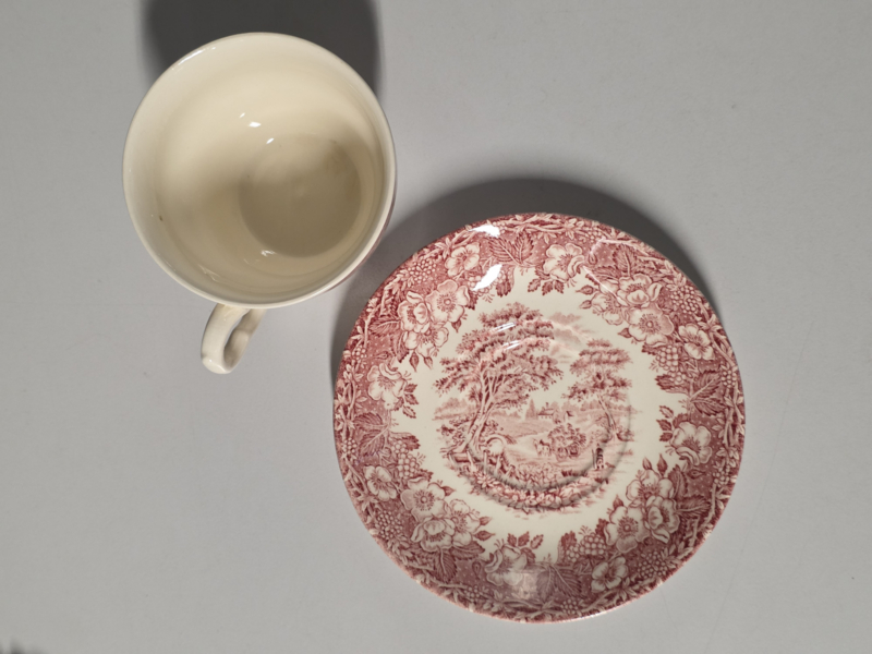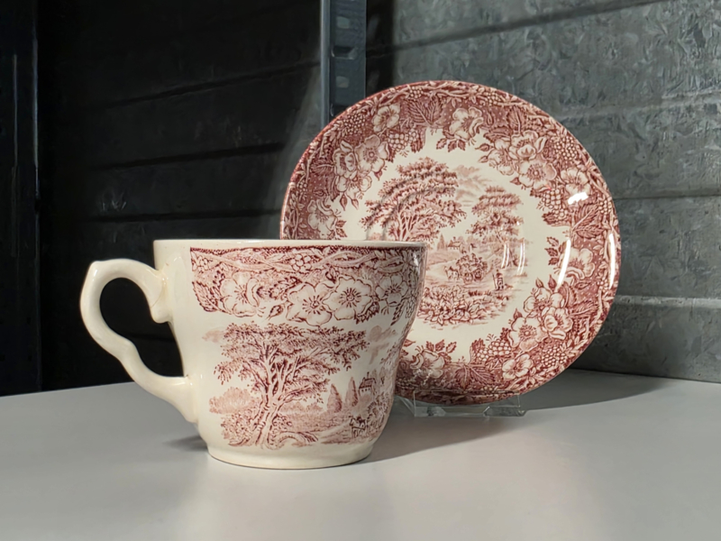 Engels rood English Ironstone Tableware EIT kop en schotel (hooiwagen)
