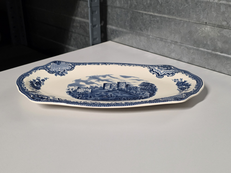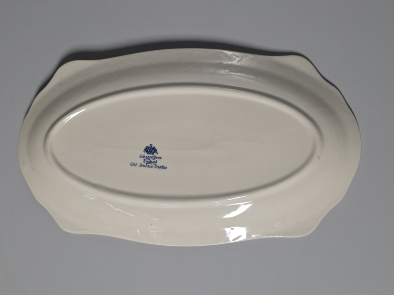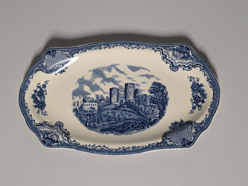 Engels blauw Johnson Bros Old Britain Castles rechthoekige schaal 32,5 cm