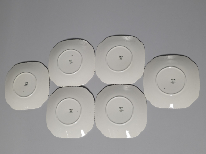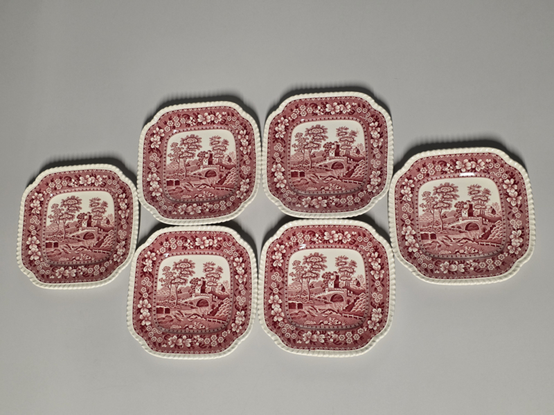Engels Copeland Spode's Tower rood set 6x vierkant gebaksbordje 14,5 cm