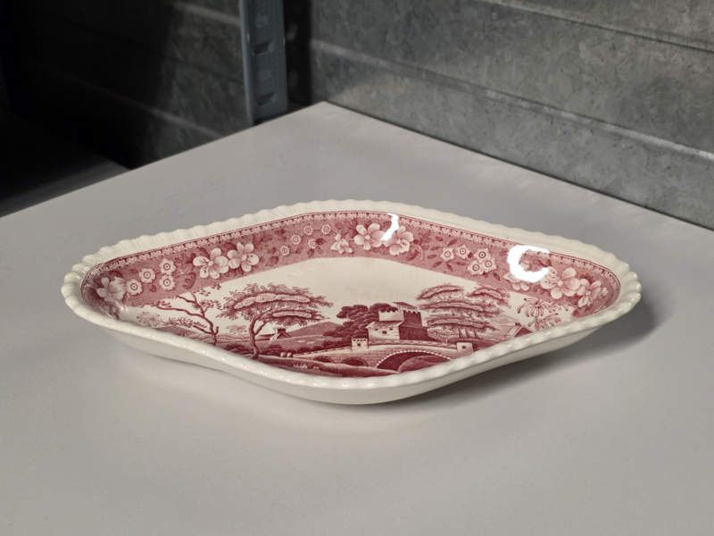Engels Copeland Spode's Tower rood ruitvormig schaaltje 23,5 cm