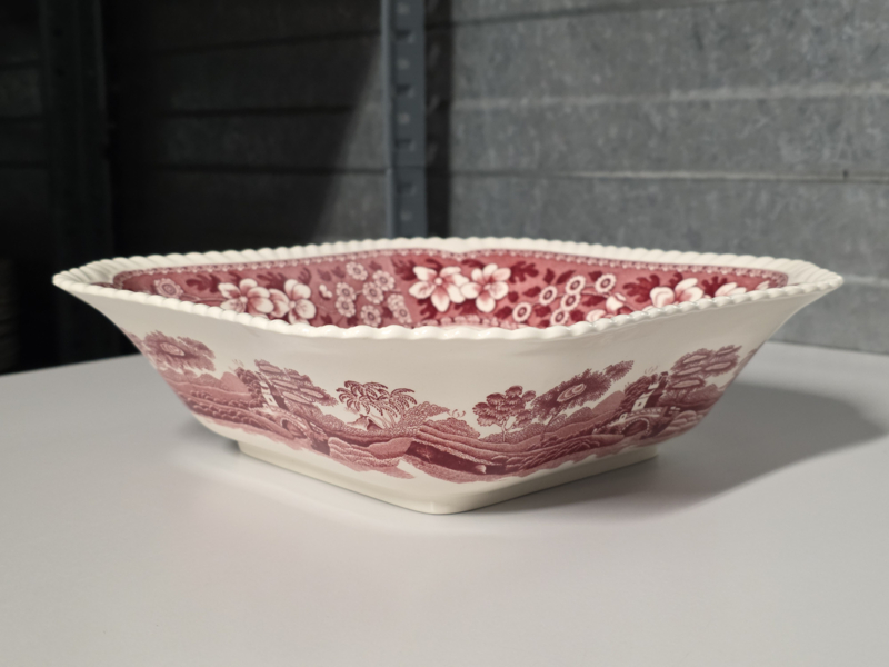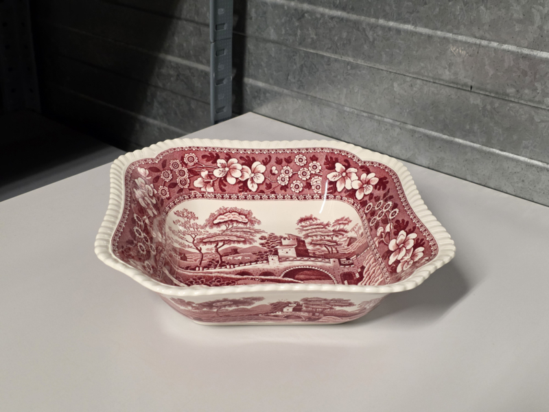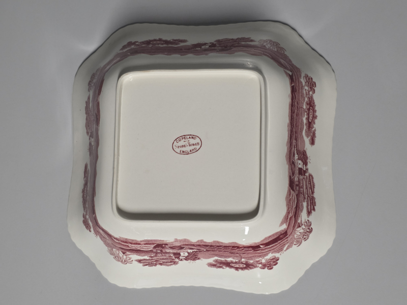 Engels Copeland Spode's Tower rood hoge vierkante schaal 23 cm