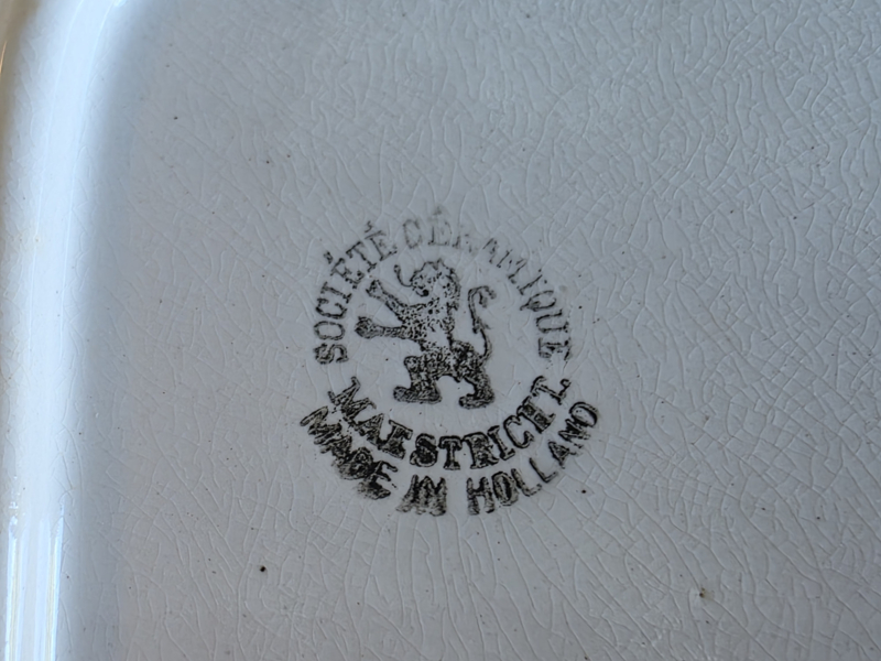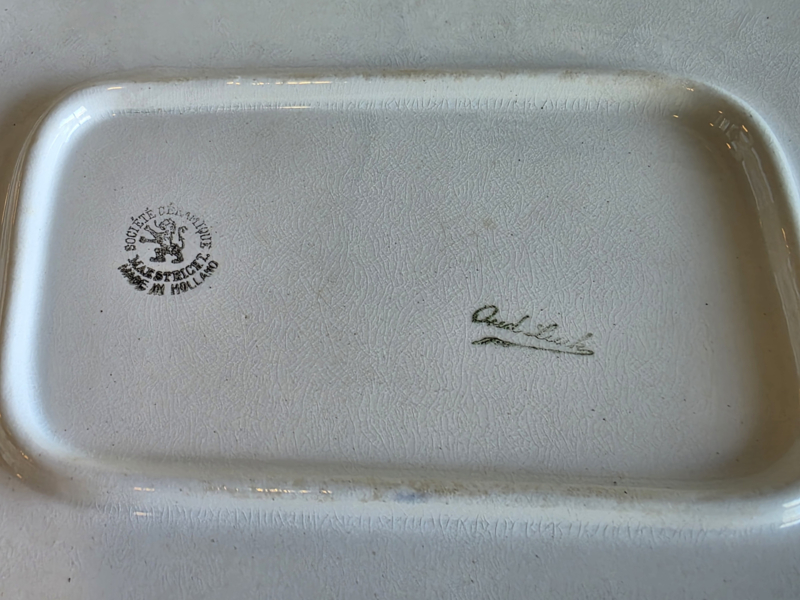 Societe Ceramique Schrijfnamendecor Oud Luik Dienblad van Aardewerk