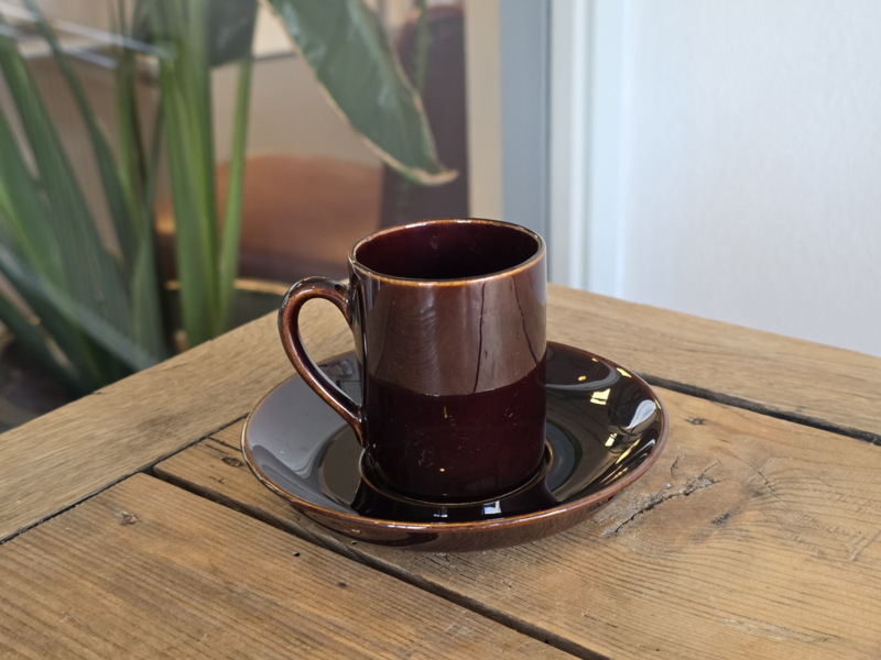 Regout Royal Sphinx bruin set 3x espresso kop en schotels bruin