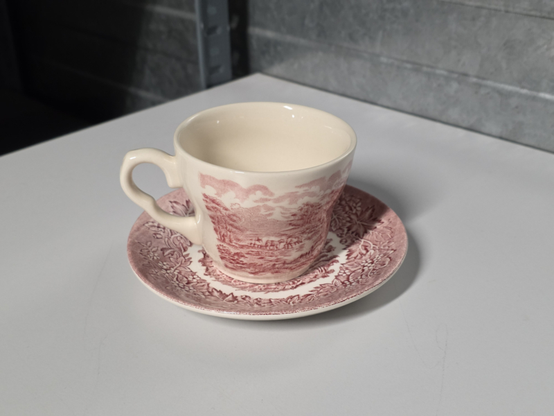 Engels rood English Ironstone Tableware EIT kop en schotel (brug)in mooie staat, kopje doorsnede 9 cm, hoogte 7,5 cm, schotel doorsnede 15 cm