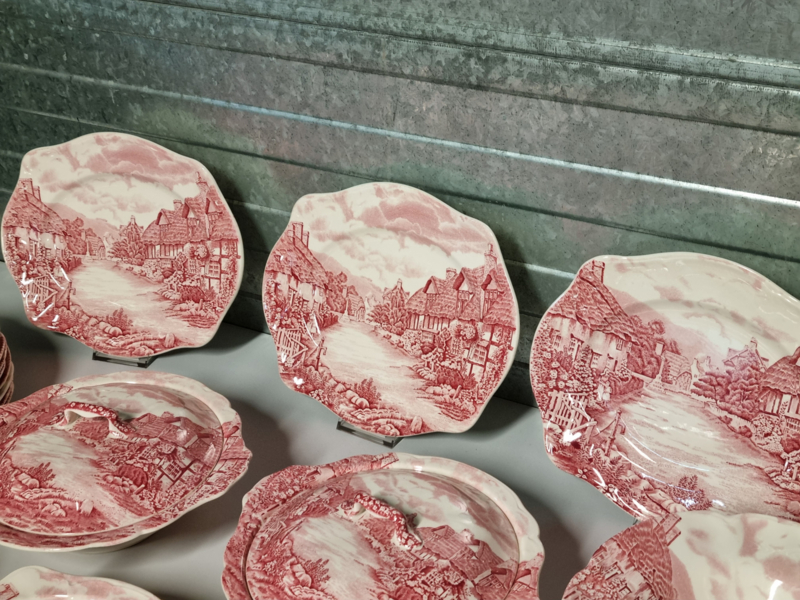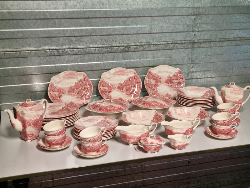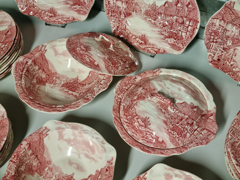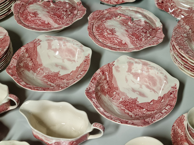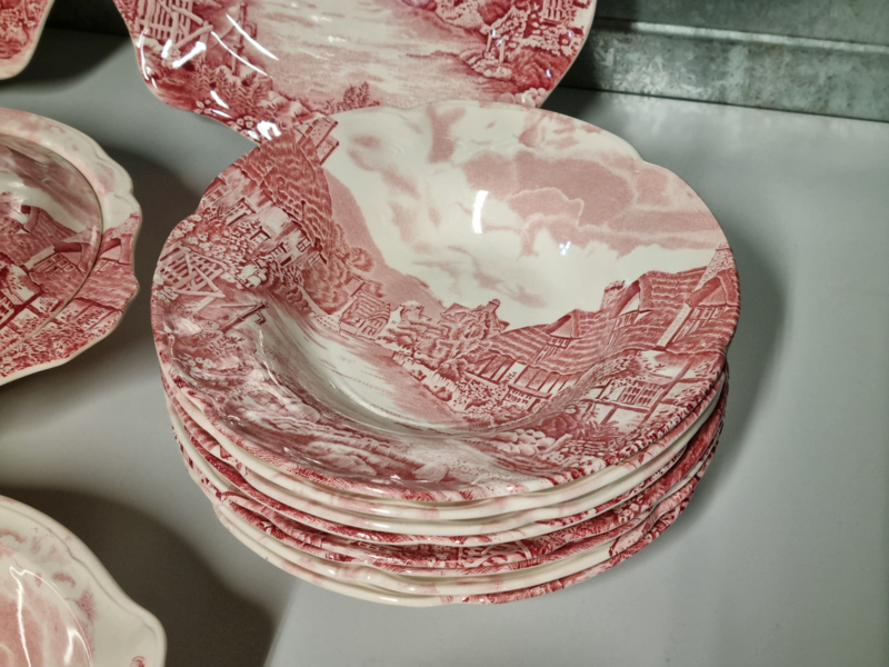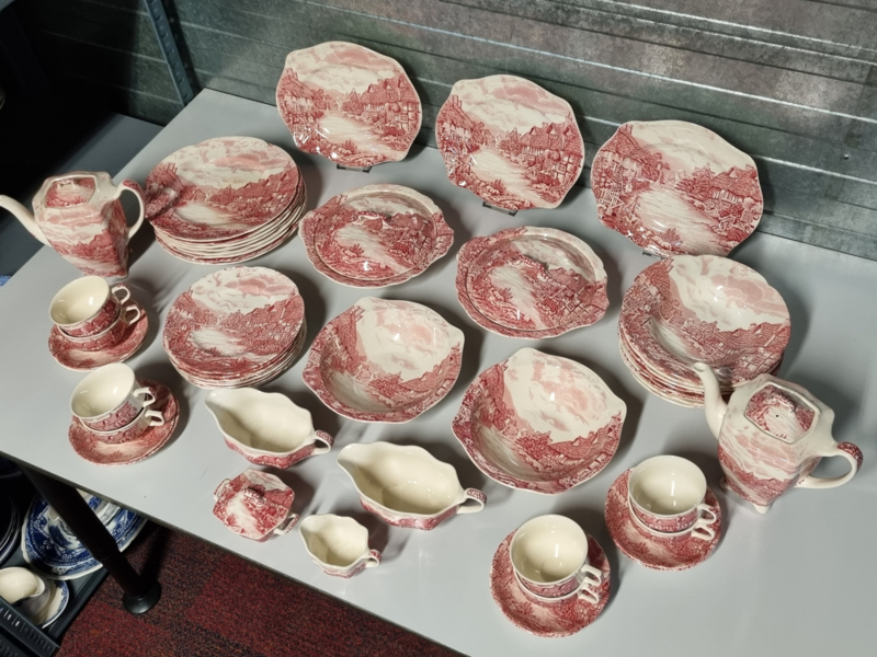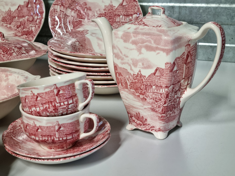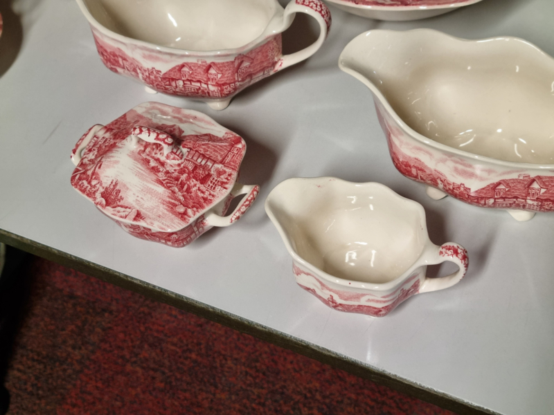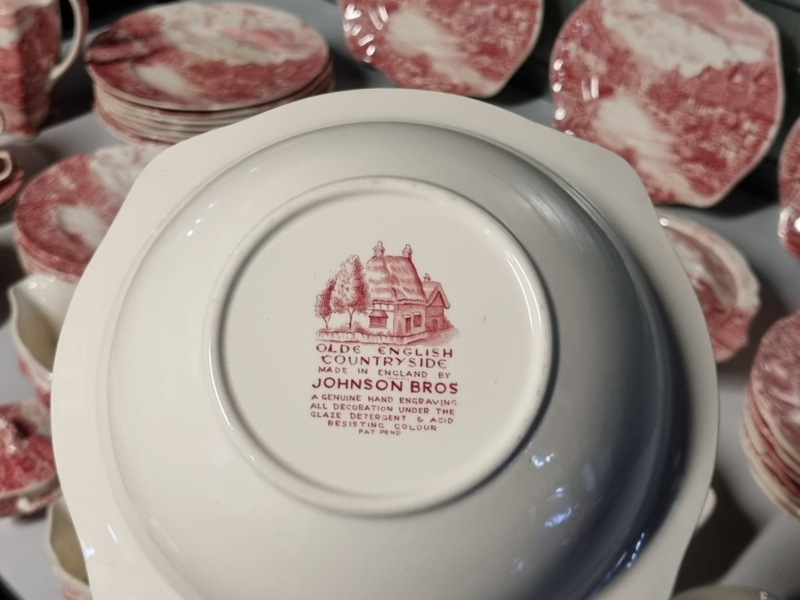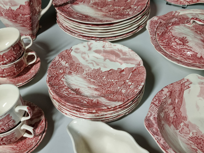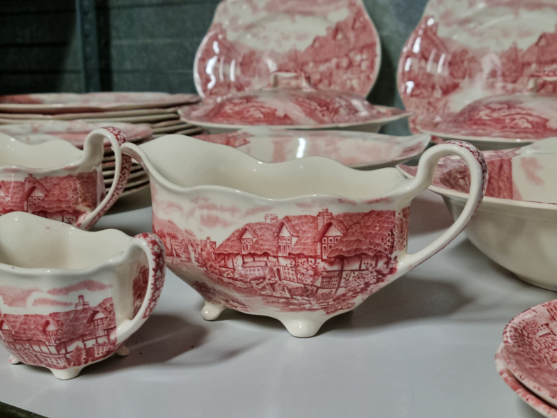 Engels rood Johnson Bros Olde English Countryside serviesset 8 personen