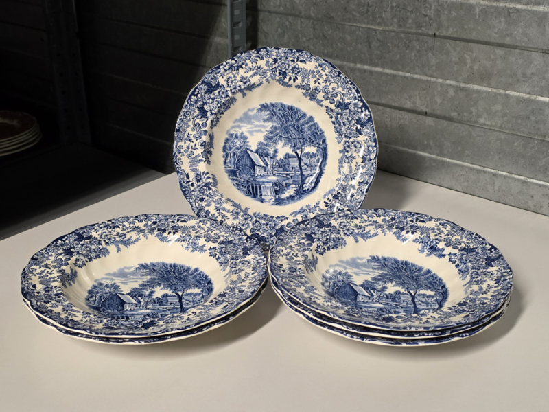 Engels blauw Johnson Bros Mill Stream set 18 borden, 6 persoons