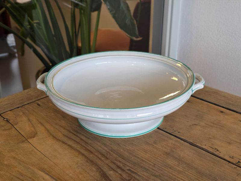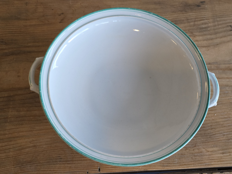 Petrus Regout Wellington Groene Rand ronde schaal met greepjes 24 cm