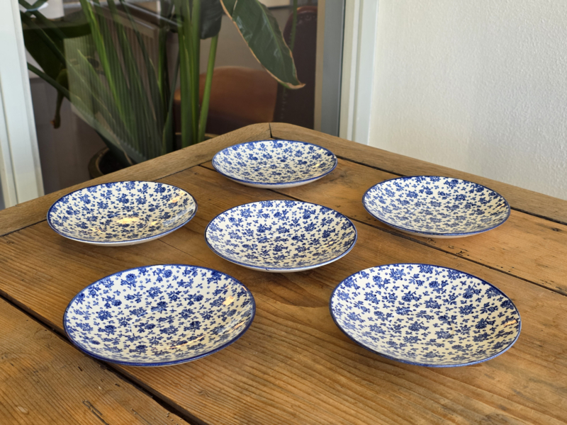 Petrus Regout Annam blauw set 6x schotel 14,5 cm