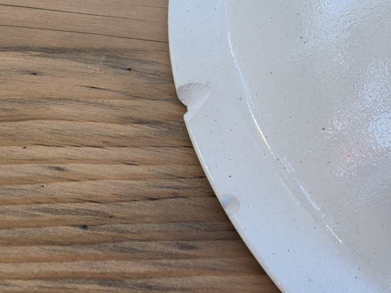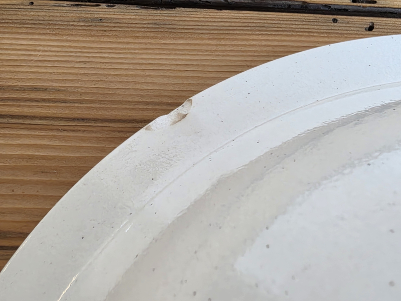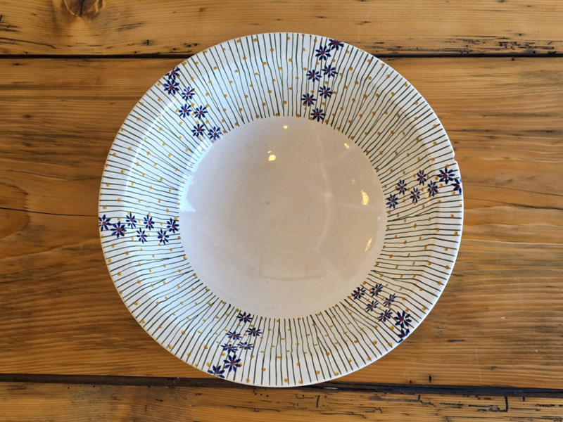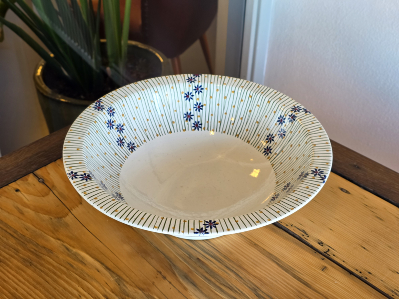 Meerdere chipjes aan de onderkant van de rand, toch nog een mooie schaal om te zien!
