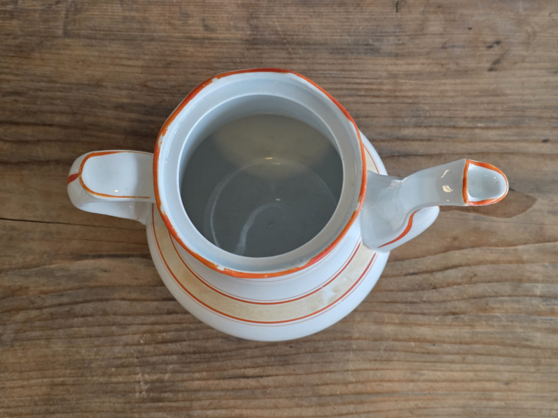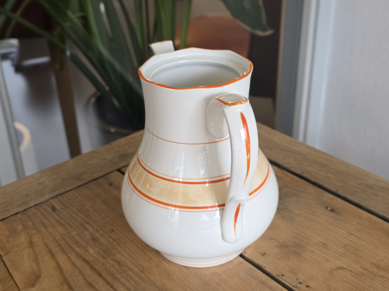 Societe Ceramique Koffiepot (vintage/retro wit met oranje)