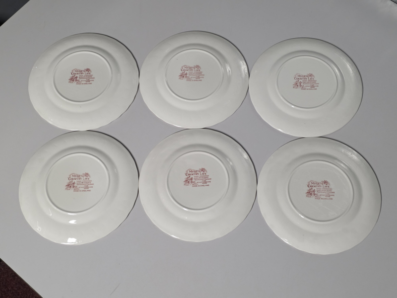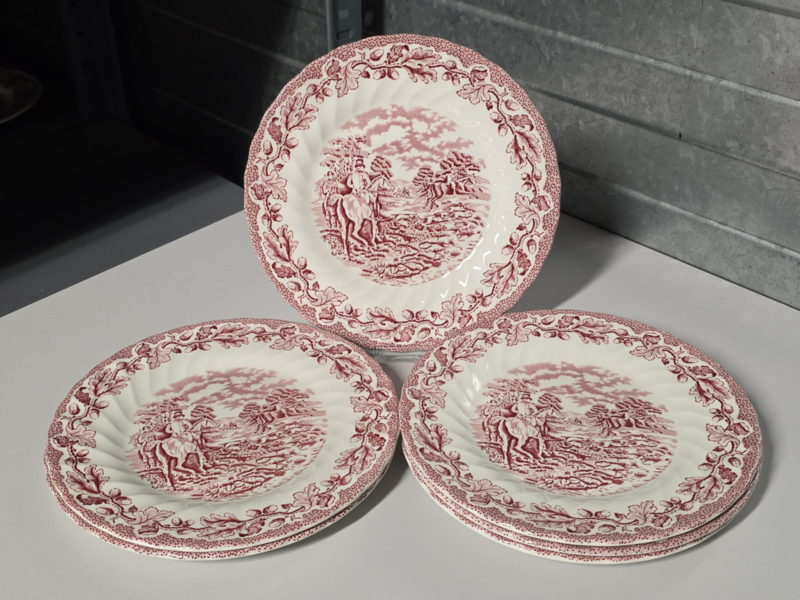 Engels rood Jachtservies Myott's Country Life set 6x ontbijtbordje 20 cm