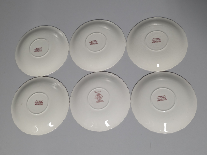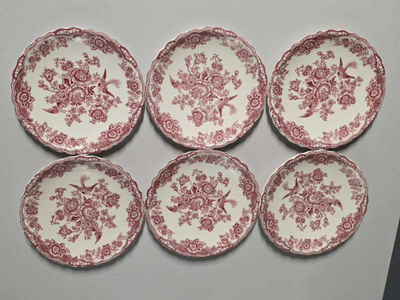 Engels rood Crown Ducal Bristol set 6x gebaksbordje 17,5 cm