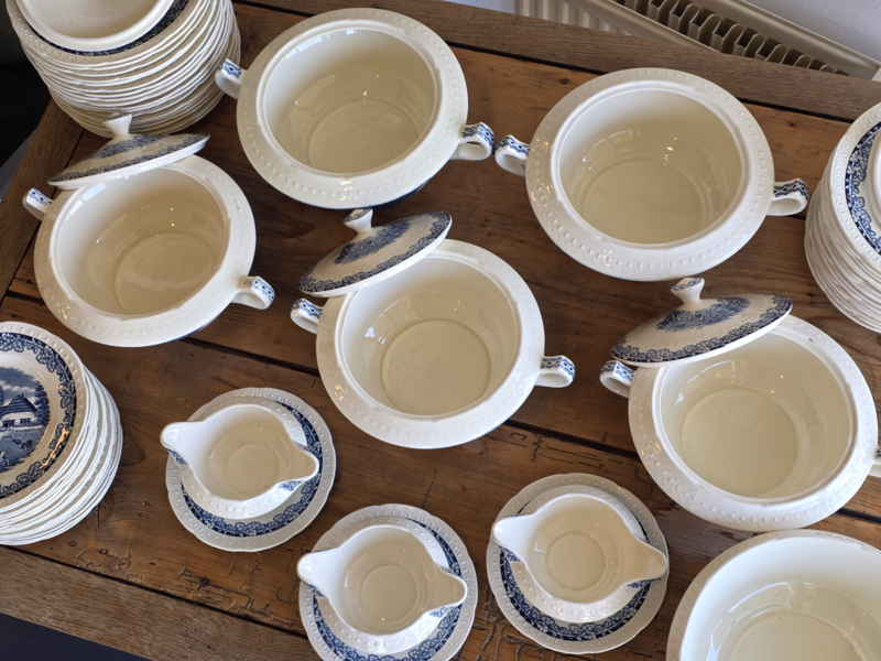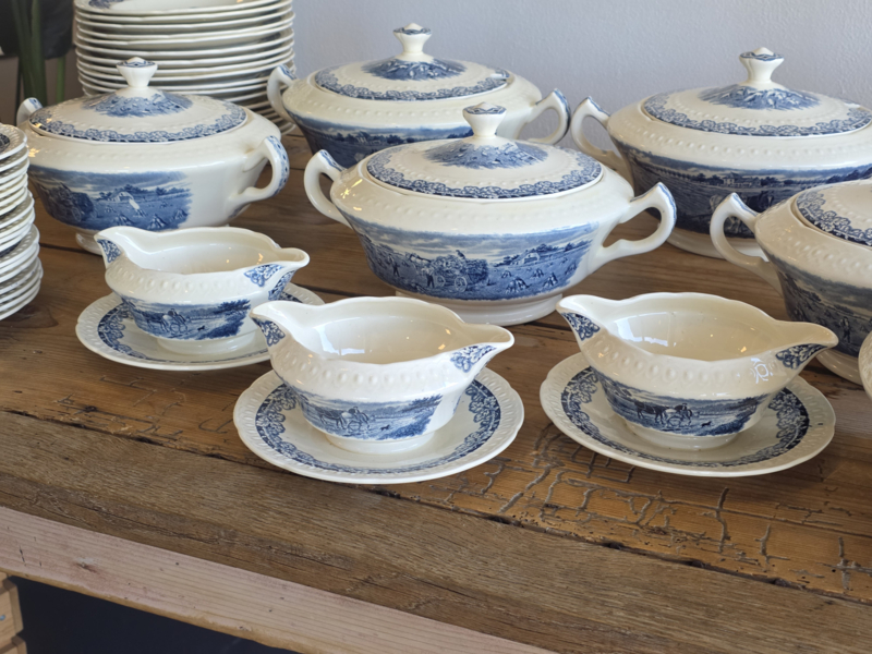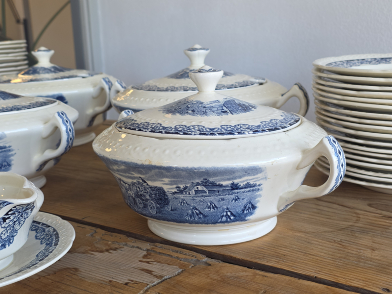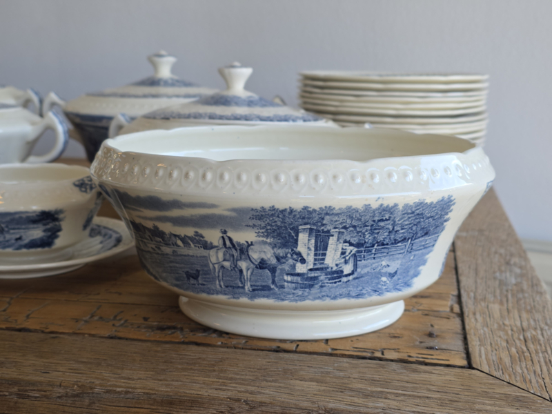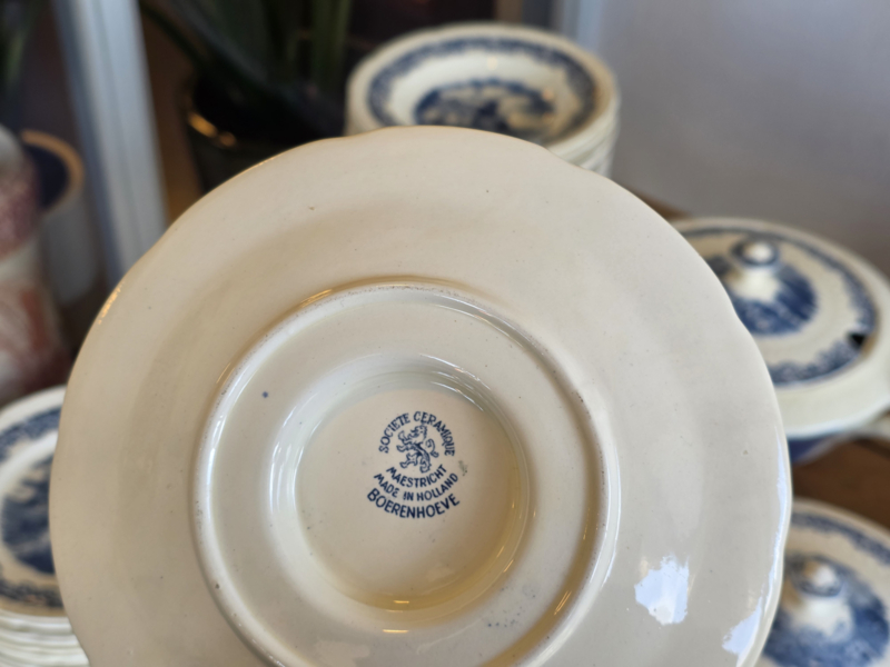 Artikelnummer: Boerenhoeve blauw Societe CeramiqueIn ontzettend mooie staat voor de leeftijd, kan lichte craquelee bevatten. De set bevat lekker veel borden en schalen.