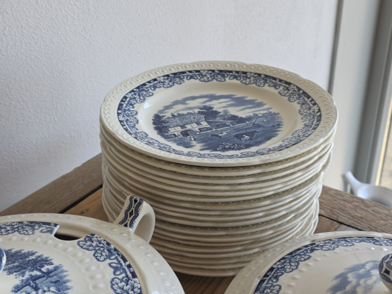 Boerenhoeve blauw Societe Ceramique Eetservies 18 persoons