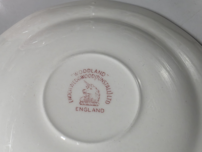 Artikelnummer: Engels rood Woodlandin mooie staat, er kan lichte craquelee onder het glazuur aanwezig zijn. Geschikt voor de vaatwasser!
