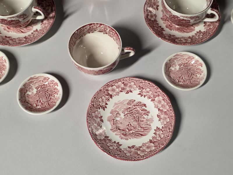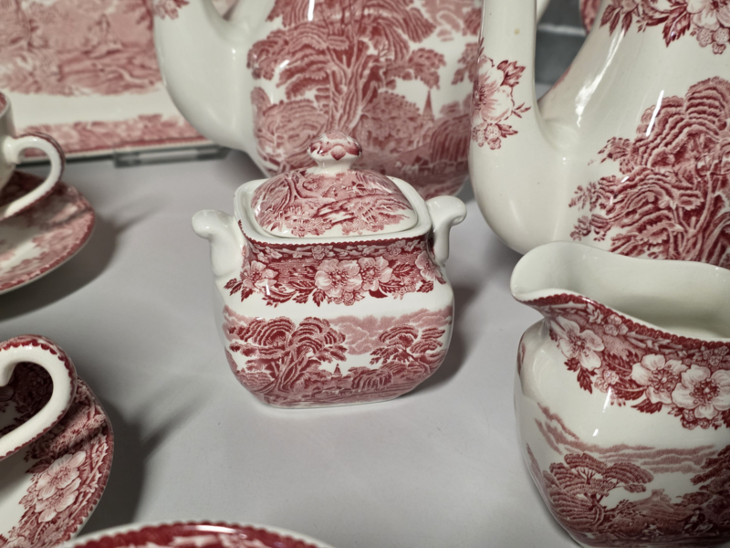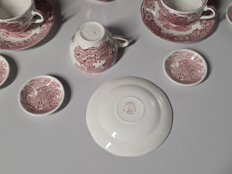 Engels rood Woodland Koffieservies Theeservies 6 persoons 18 delen