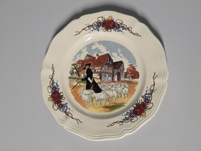 Frans Sarreguemines Obernai onbijtbord 21,5 cm (schapen)