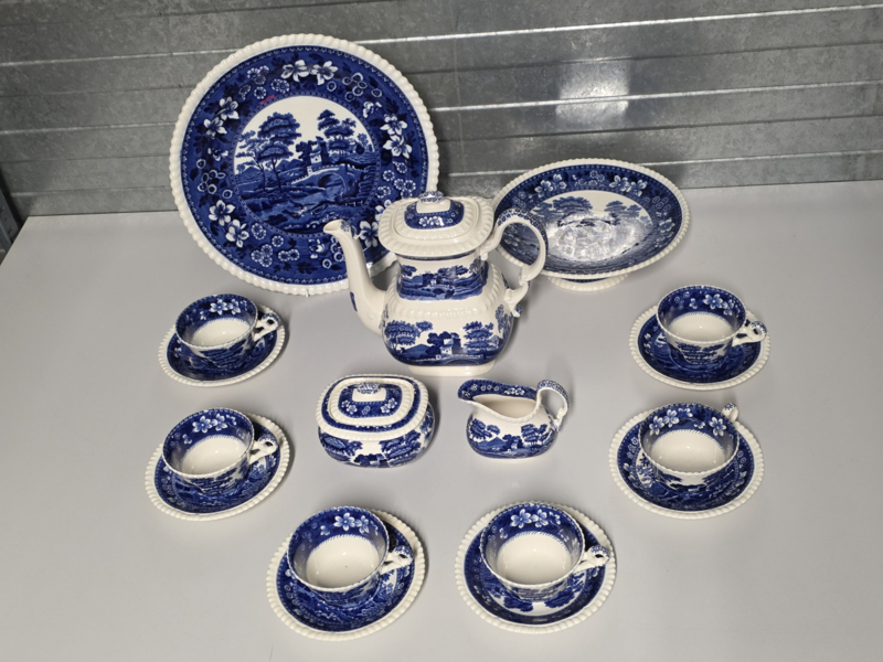 Engels blauw Spode's Tower blauw Compleet eetservies 18 persoonsEngels blauw Spode's Tower blauw