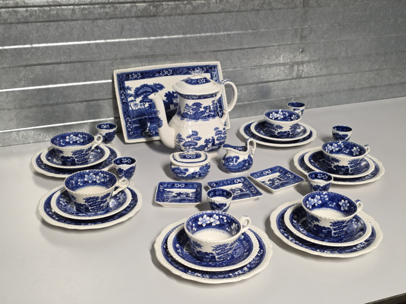 Engels blauw Spode's Tower blauw Compleet eetservies 18 persoonsEngels blauw Spode's Tower blauw