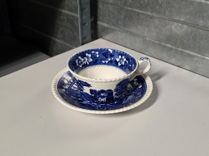 Engels Copeland Spode's Tower blauw robuuste Bouillon Thee kop en schotel