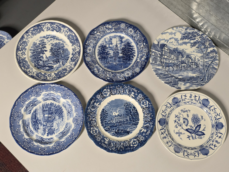 Engels blauw Mix & Match Set 6x dinerbord 24 - 25,5 cm