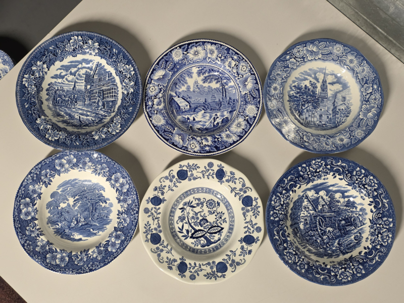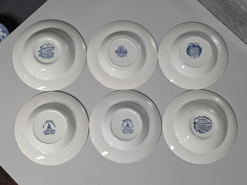 Engels blauw Mix & Match Set 6x diepe borden 22 - 22,5 cm