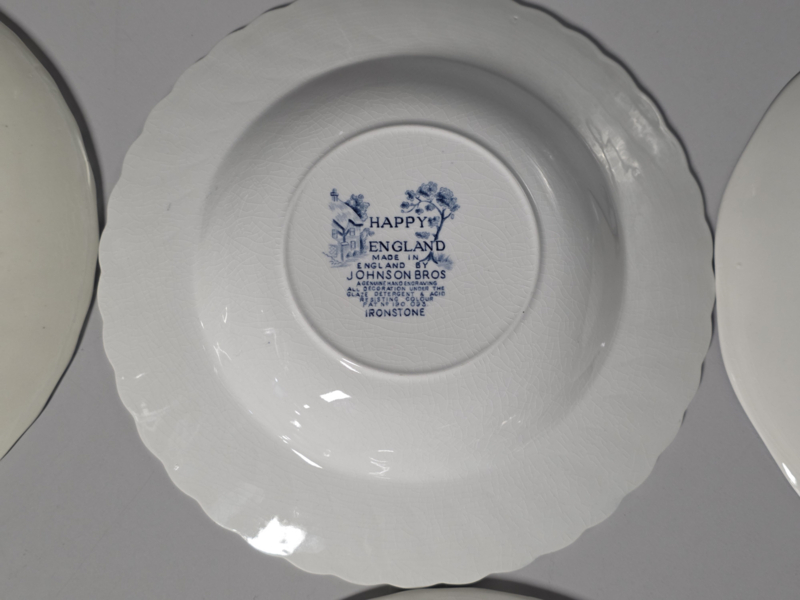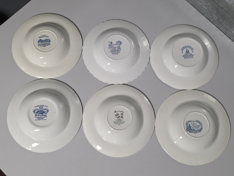 Engels blauw Mix & Match Set 6x diepe borden 25 - 25,5 cm