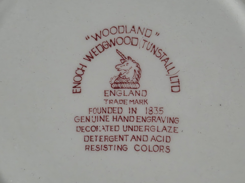 Artikelnummer: Engels rood WoodlandIn mooie staat, kan craquelee bevatten. Gebruiksvriendelijk servies, geschikt voor de vaatwasser!