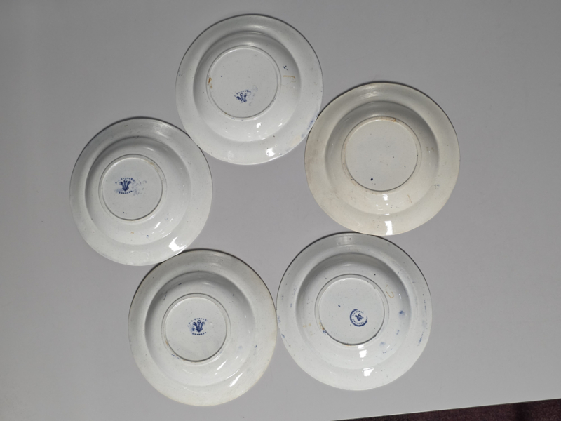 Engels blauw D.J. Evans Swansea set 5x diepe borden 24 cm