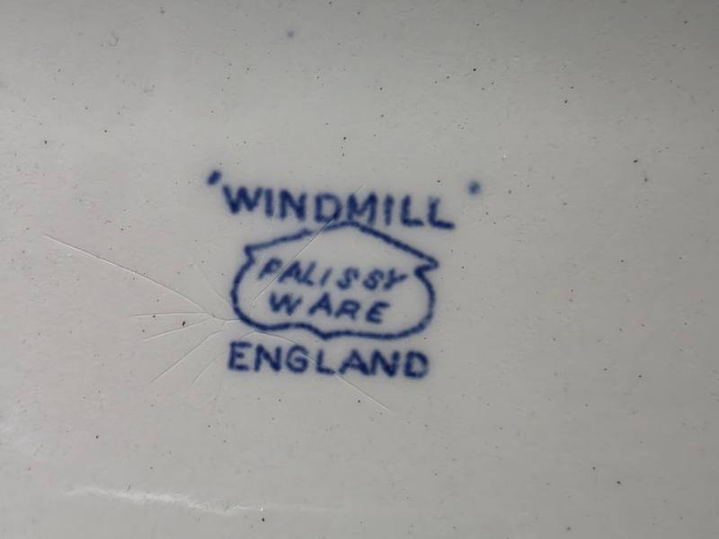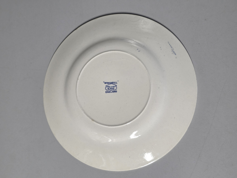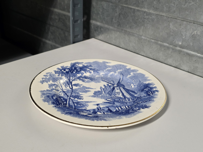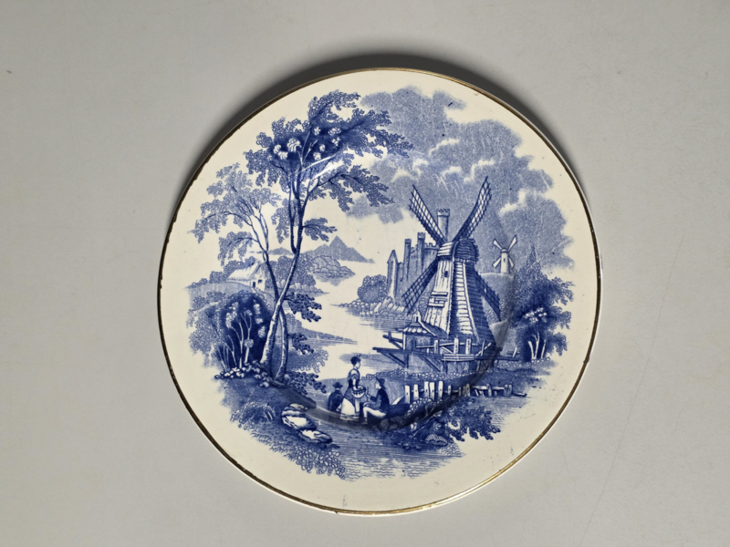 Engels blauw Palissy Ware Windmill ontbijtbord 20 cm