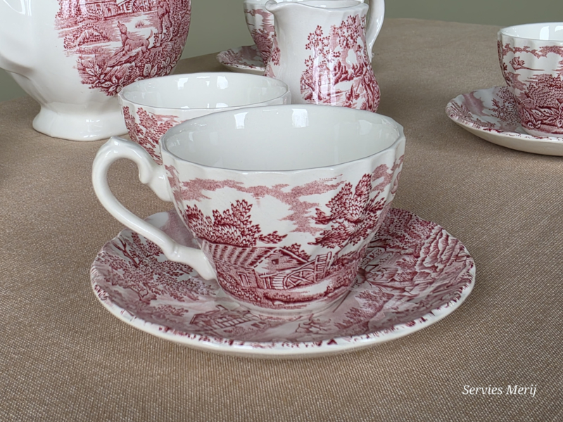 Engels rood The Hunter by Myott Koffieservies Ontbijtservies 8 personenEngels rood Myott The Hunter
