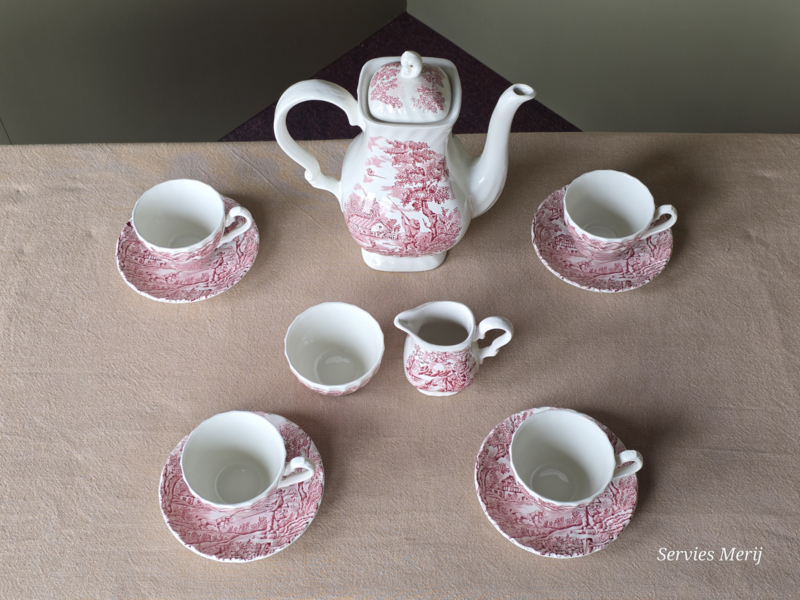 Engels rood The Hunter by Myott Koffie Theeservies 4-personen
