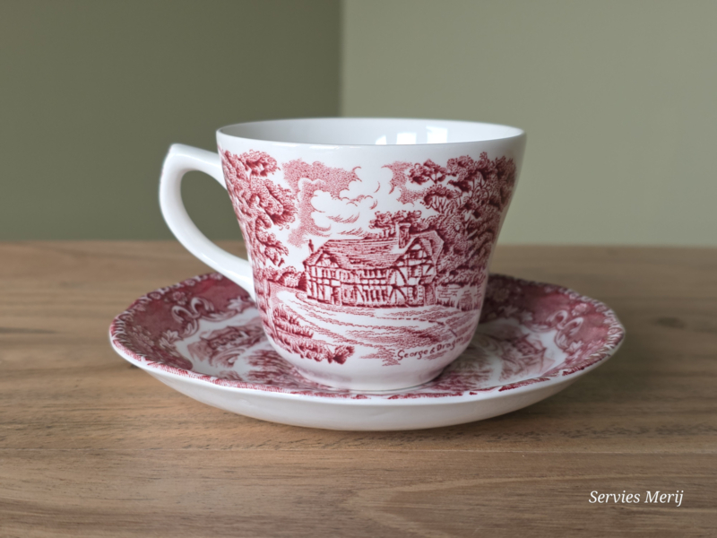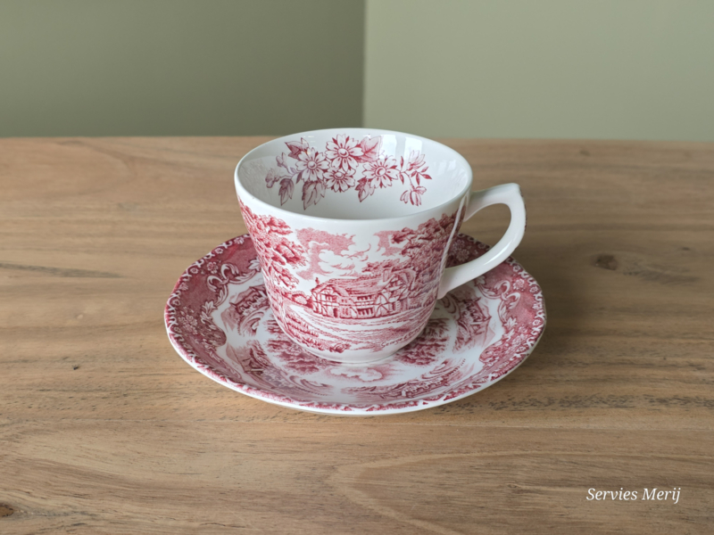 Engels rood Grindley Country Inns Koffie kopje met schotel (bloem binnenkant)