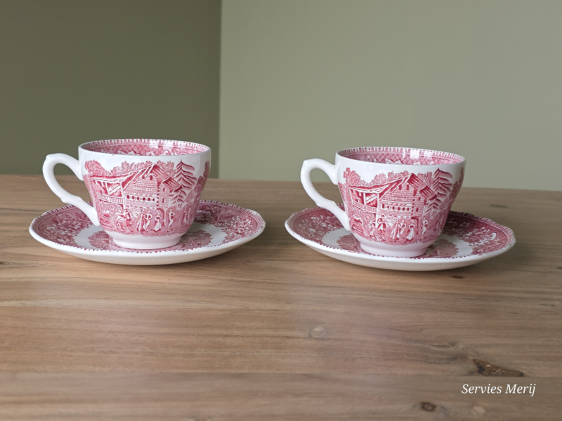 Engels rood Enoch Wedgwood Avon Cottage set 2x kop en schotel