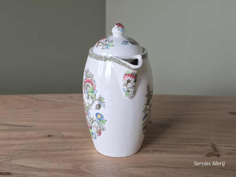 chip aan de binnenrand van het deksel, verder in mooie staat, hoogte 16 cm, goed voor inhoud ca. 0,9 liter