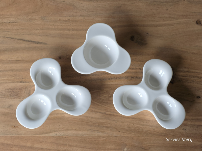 Als nieuw, 2x eierschaal voor 3 eieren en 1x dipschaal voor de saus