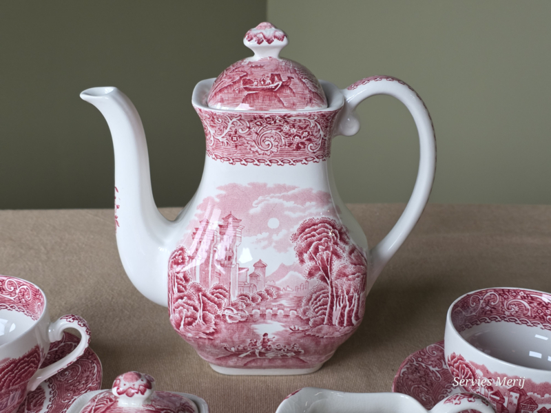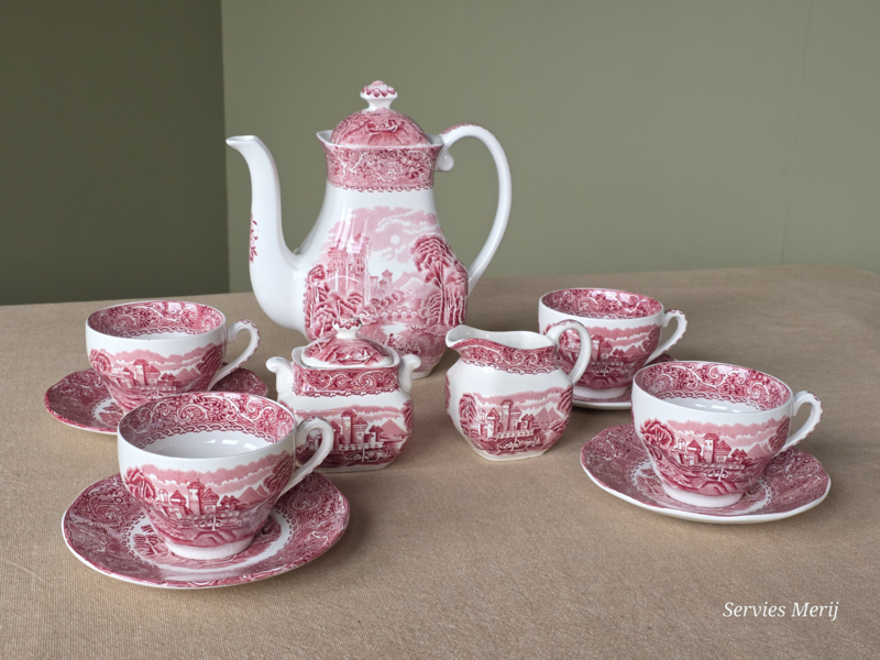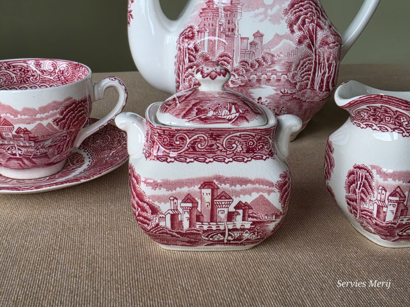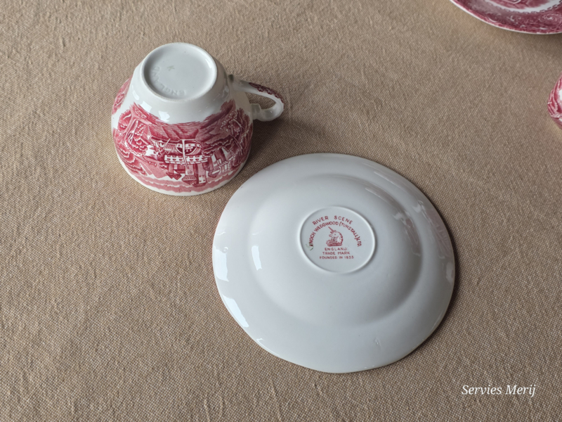 Engels rood Enoch Wedgwood River Scene koffieservies theeservies 4 personen