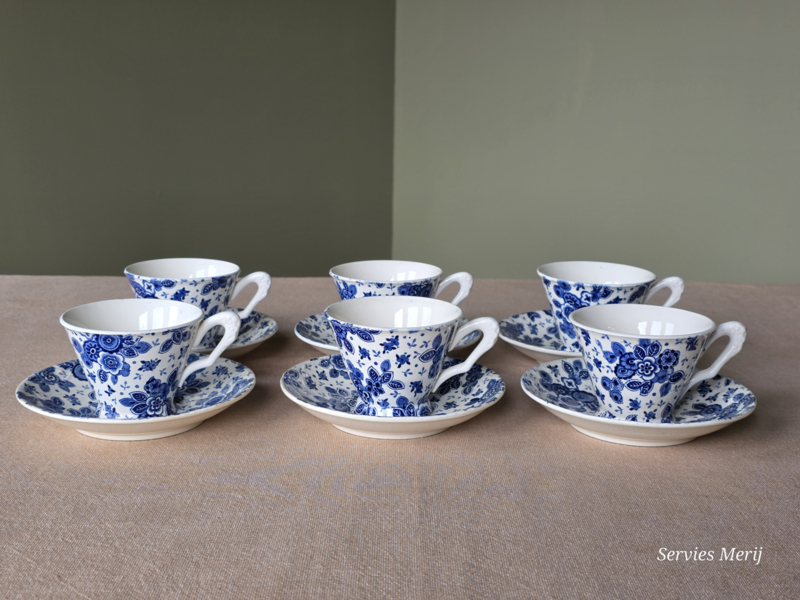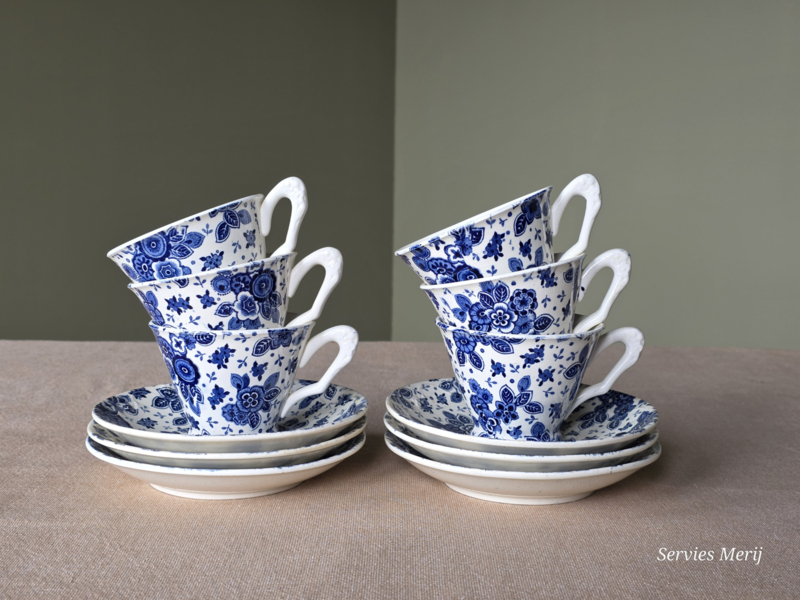 Beatrix Societe Ceramique set 6x Koffie Kop en schotel met bloemkooloortje en relief schotel