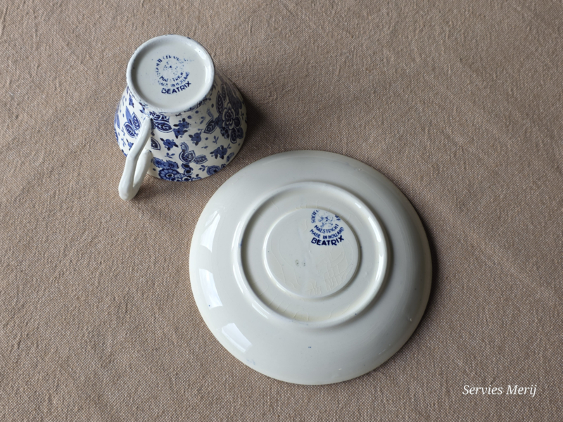 Beatrix Societe Ceramique Koffie Kop en schotel met bloemkooloortje