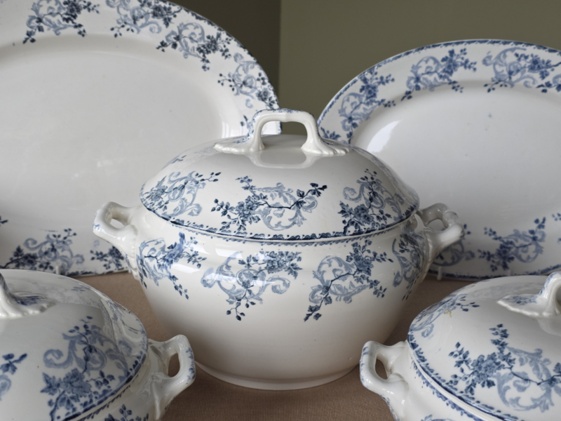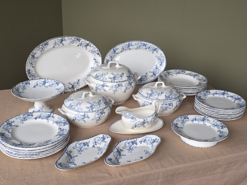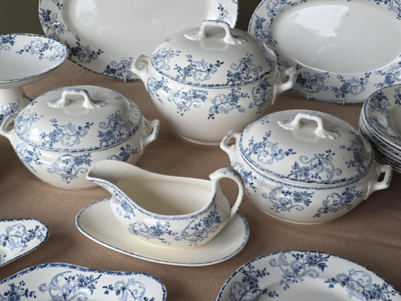 Frans Longwy blauw Rejane compleet Eetservies 8-pers.