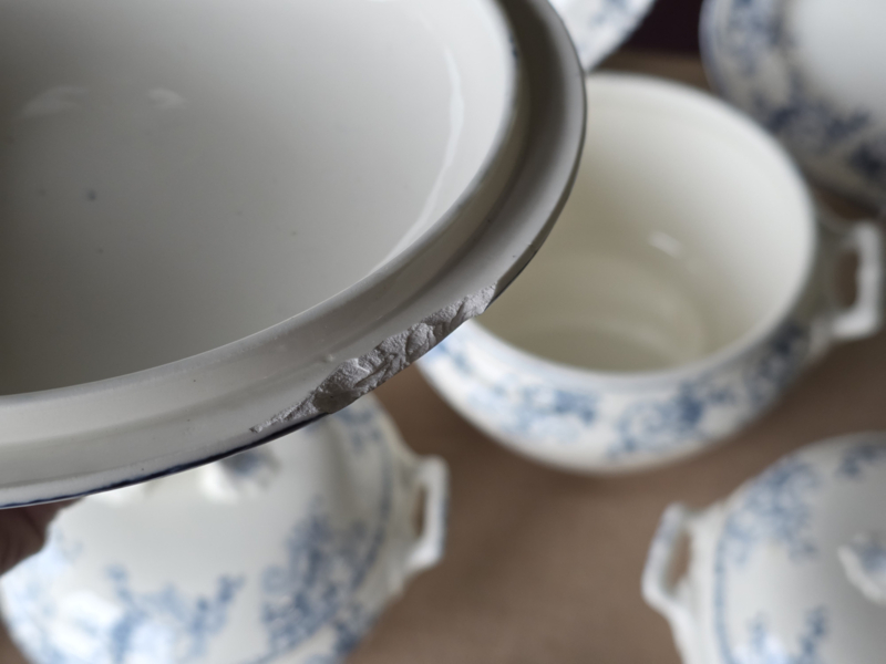 1x grote soepterrine (grove chip aan de rand van het deksel)