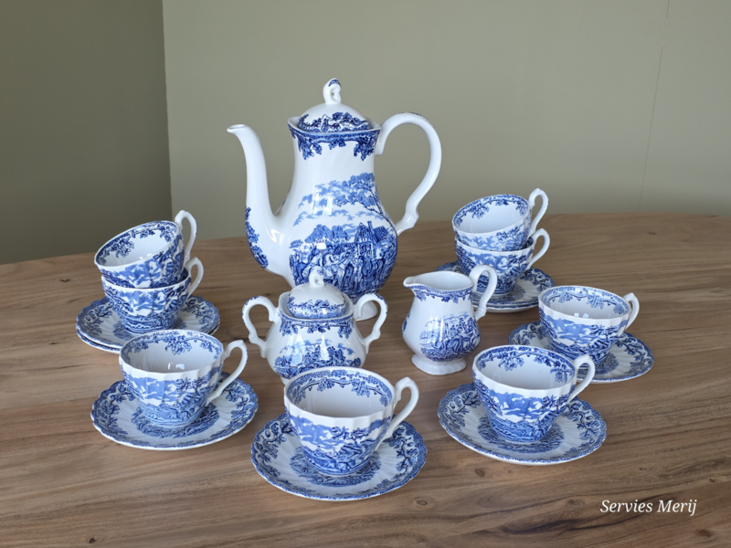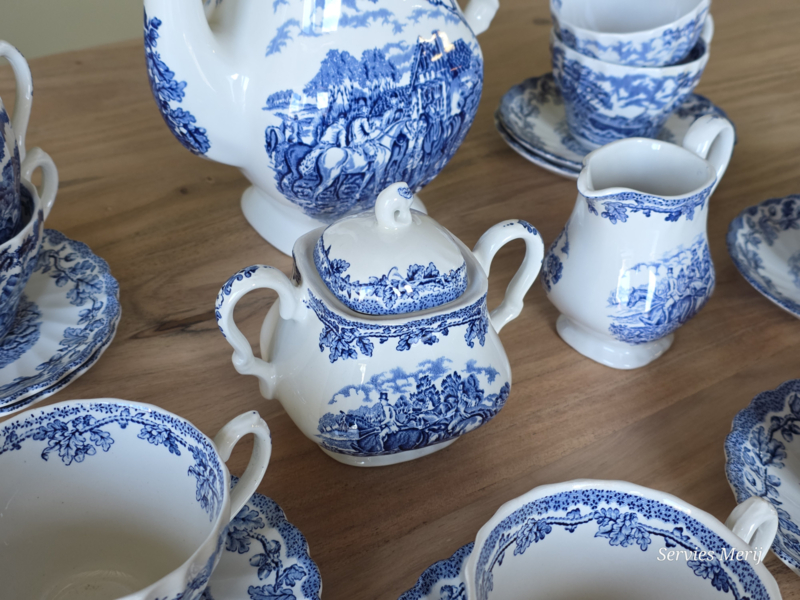 Engels blauw Jachtservies Myott's Country Life koffieservies theeservies 8 personen