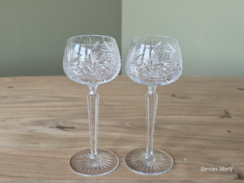 Boheems Kristal Glas set van 2x op hoge voet 19,5 cm kleur Blanc