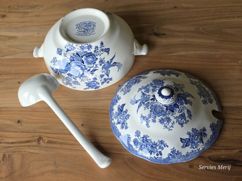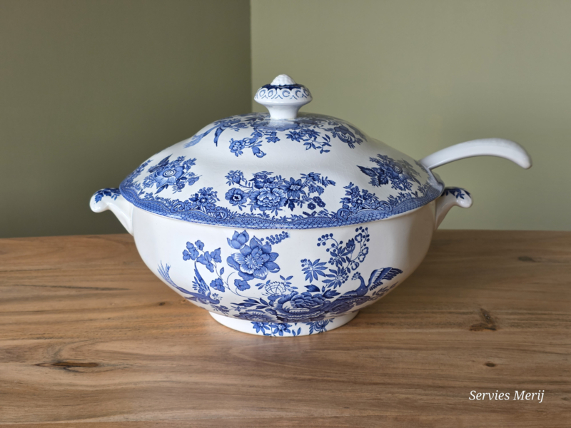 Engels blauw Wedgwood Asiatic Pheasants robuuste terrine met aardewerk lepel